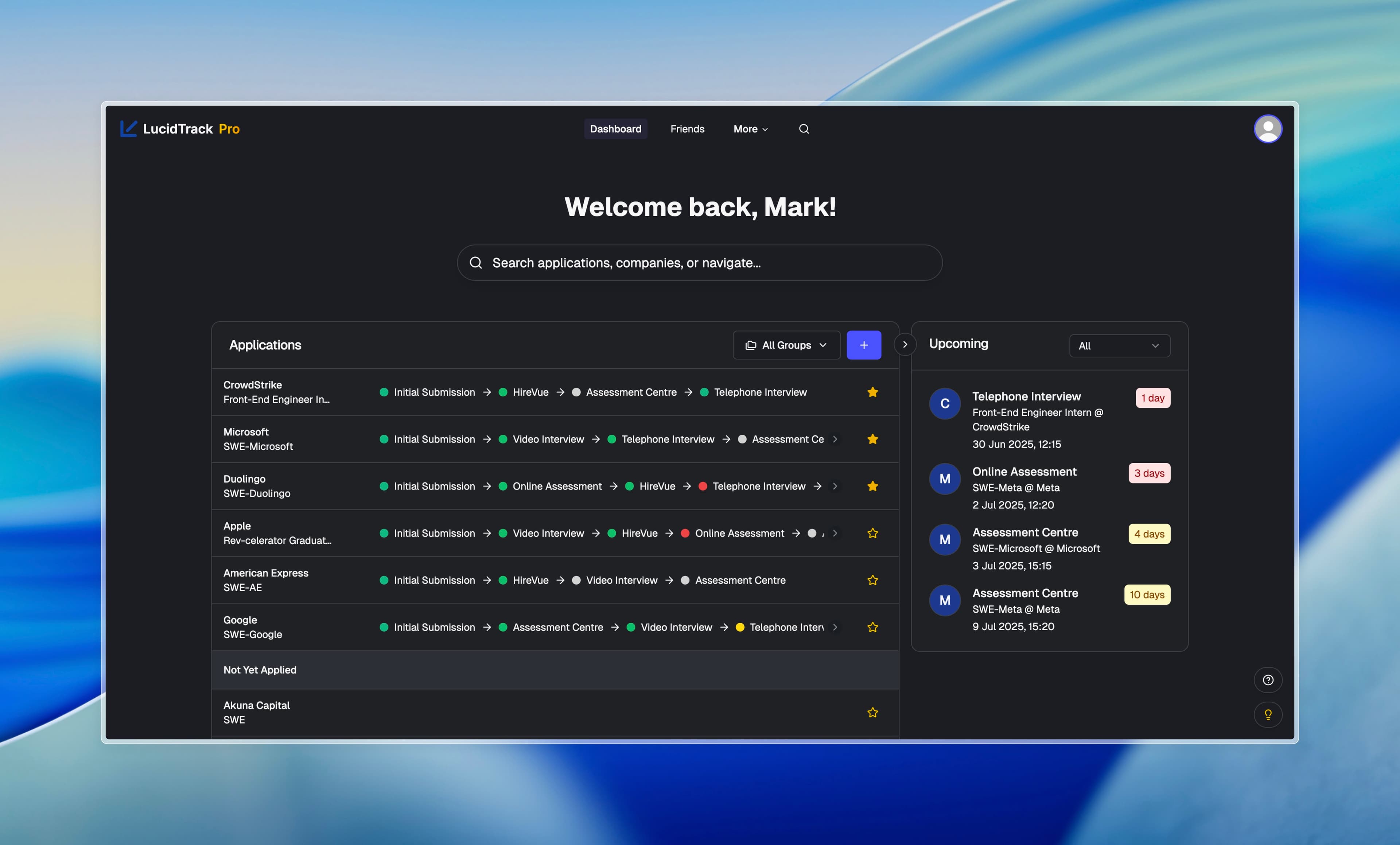 LucidTrack is a modern web application designed to streamline the management of internship applications and their outcomes for students. It offers a customisable interface and gives a clear view into overall progress and performance of a students applications.
